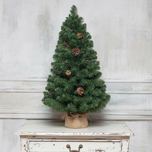 Ель настольная Снежная королева зеленая с шишками 90 см.
