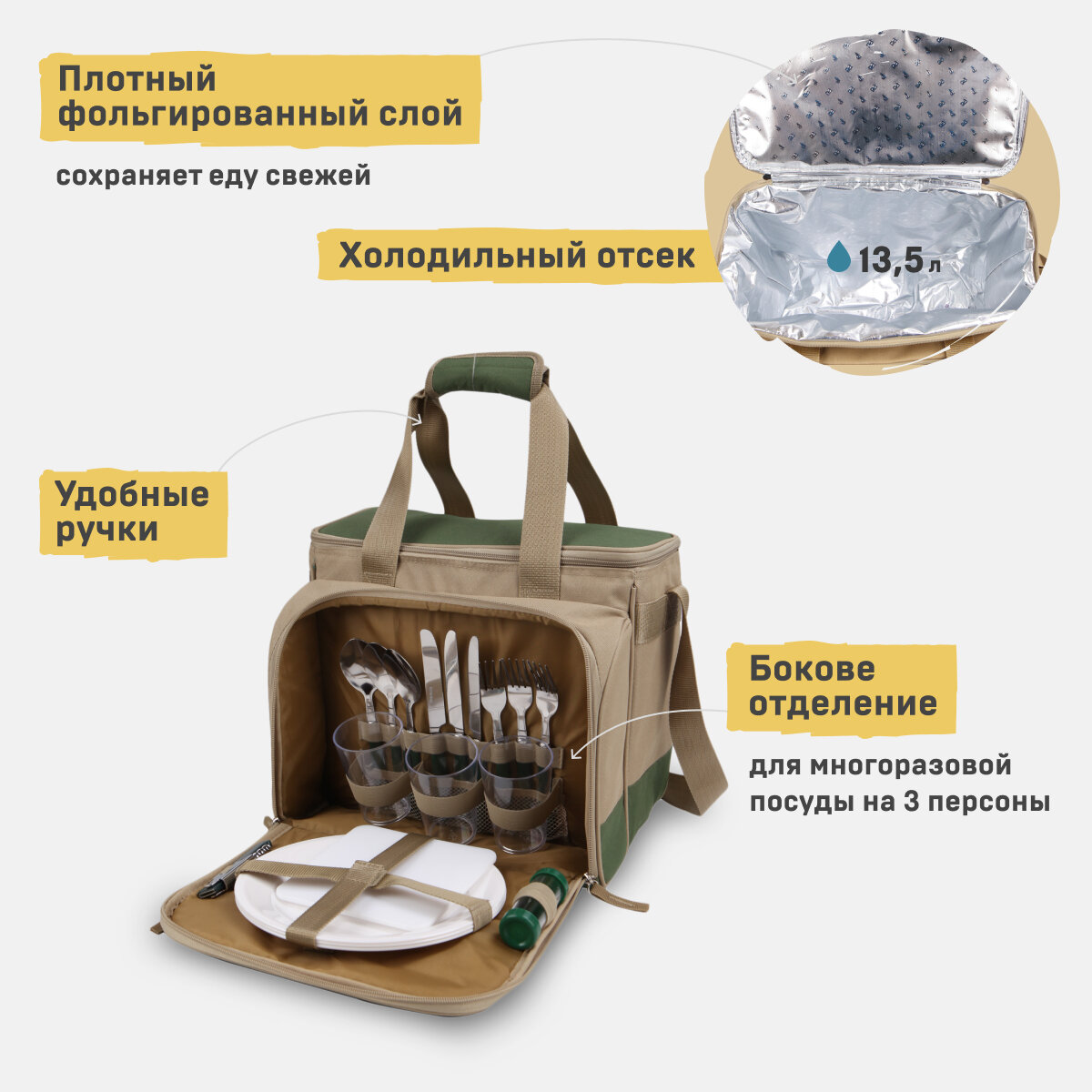 Термосумка "Арктика", с набором посуды для пикника на 3 человека, 13.5 л, 34 х 24 х 30.5 см информация: