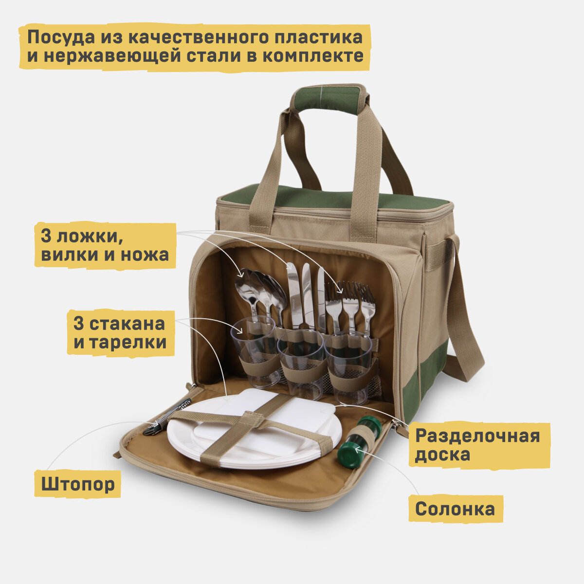 Термосумка "Арктика" с набором посуды для пикника на 3 человека, 13.5 л, 34 х 24 х 30.5 см