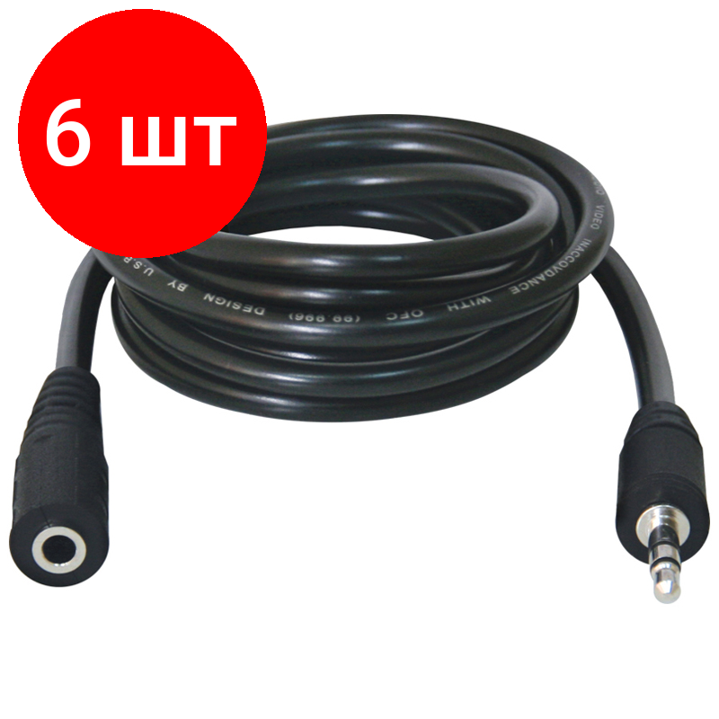 Комплект 6 шт, Кабель удлинительный Defender JACK02-05 аудио JACK (M) - JACK (F), 1.5м, черный информация:
