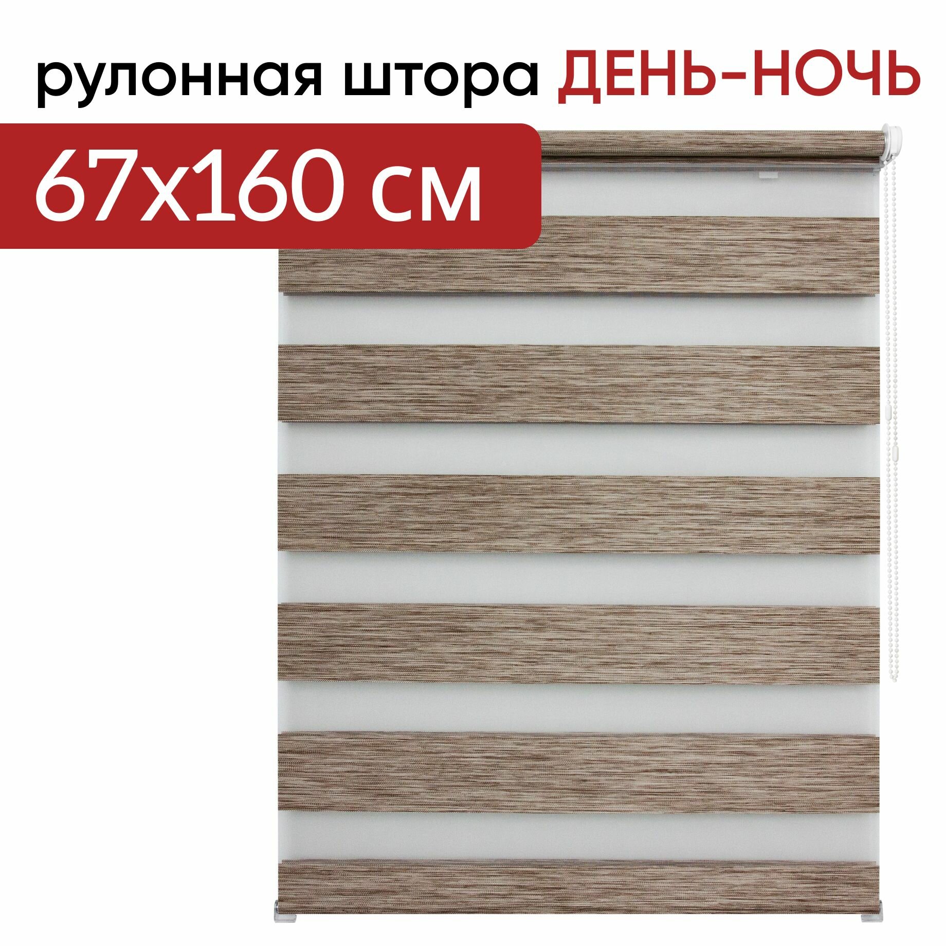 Рулонная штора УЮТ День-Ночь 067х160 см Канзас шоколад, рольштора полиэстер, затемнение 60%