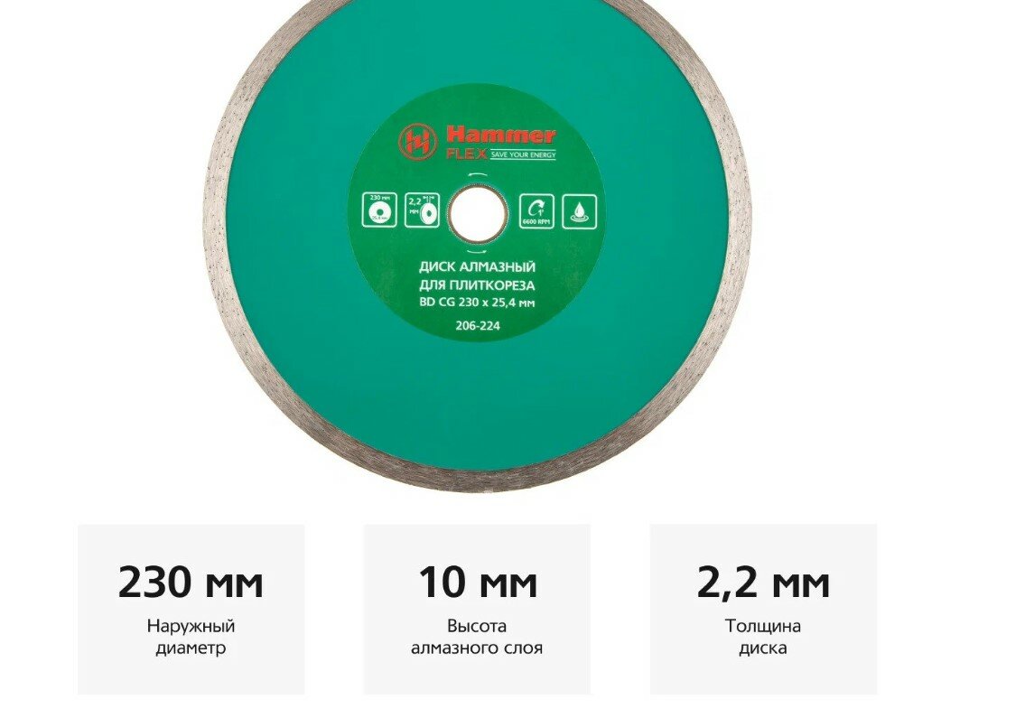 Отзывы на Диск алмазный 230х25.4 мм, ВD CG Hammer Flex, 206-224, 310206, сплошной по керамограниту