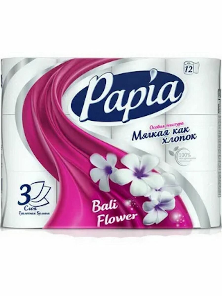 Papia Туалетная бумага трёхслойная Балийский Цветок 12 рулонов