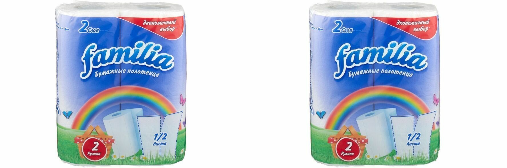 Familia Полотенца бумажные Радуга 1/2 листа 2х слойные 2 рулона 2 шт