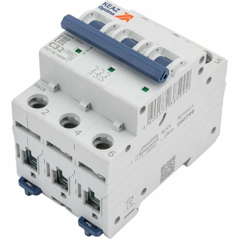 Автоматический выключатель КЭАЗ OptiDin 3P 32А тип C 6 кА 380 В на DIN-рейку (260796) информация: