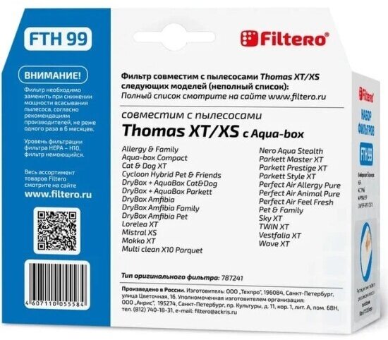 Фильтр Filtero Hepa Filter FTH 99 TMS для пылесосов Thomas информация: