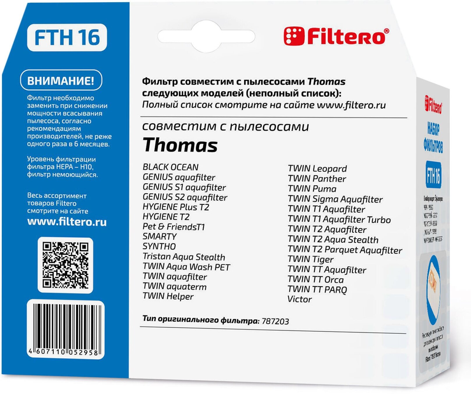 Аксессуар для пылесоса Filtero fth 16 hepa . информация:
