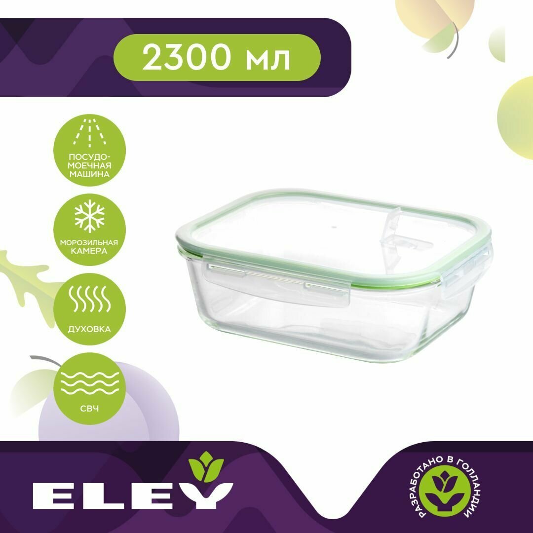 Стеклянный пищевой контейнер для хранения еды Eley, прямоугольный, цвет: зеленый, 2,3 л информация: