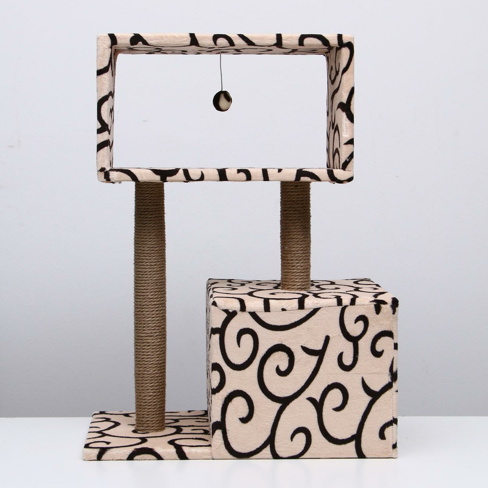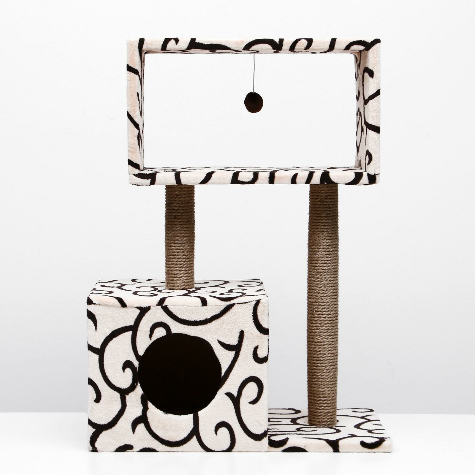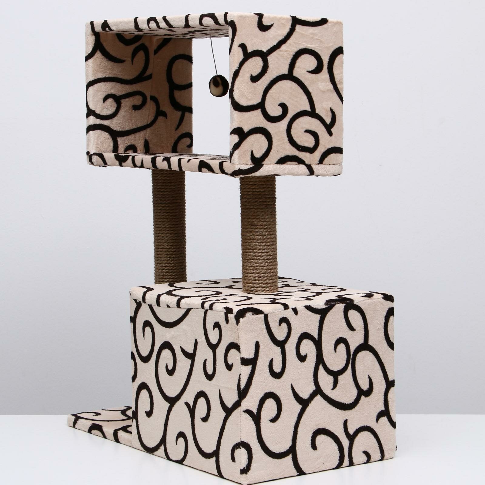 10 цен на Домик для кошек с когтеточкой "Куб", с мезонином и игрушкой, 60 х 35 х 85 см, микс цветов
