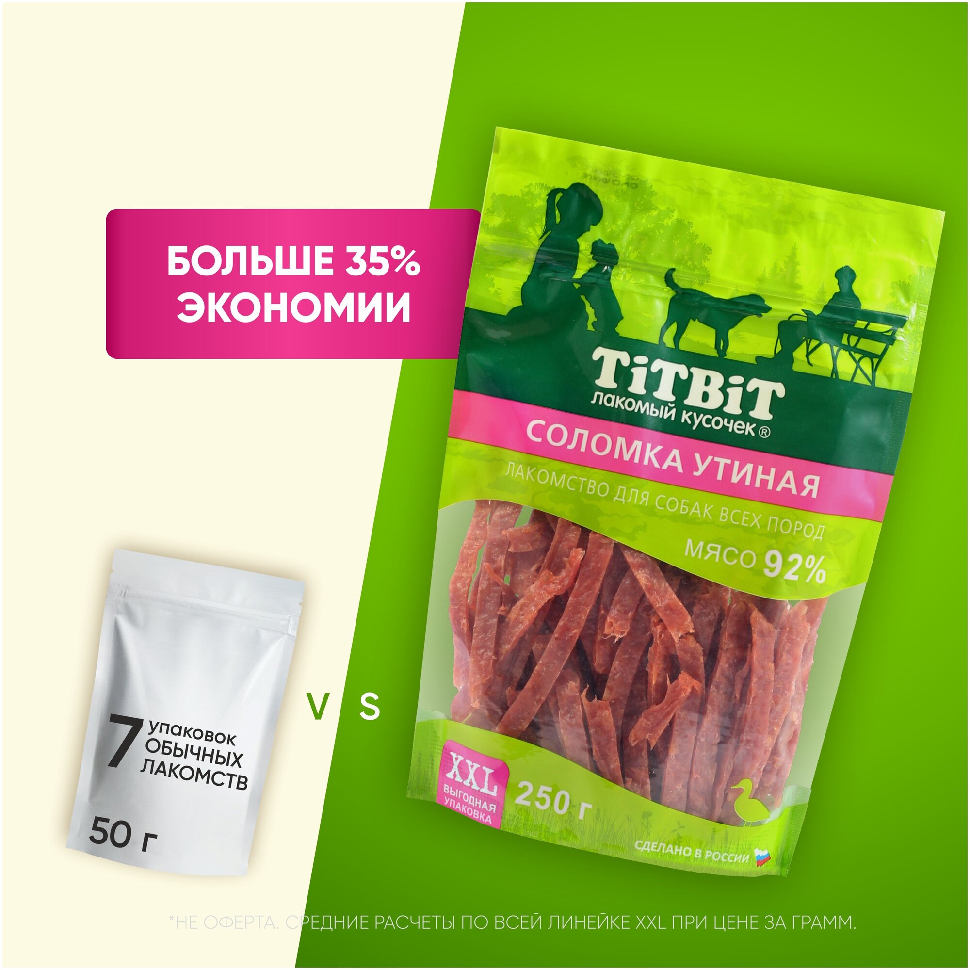 10 цен на Титбит 024287 Лакомство для собак Соломка утиная XXL выгодная упаковка 250г