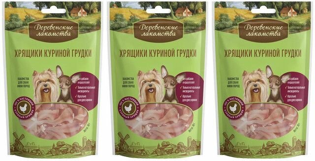 Деревенские лакомства для мини собак Хрящики куриной грудки 30г, 3 упаковки
