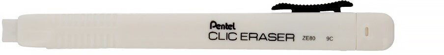 Ластик выдвижной PENTEL (Япония) "Clic Eraser", 117х12х15 мм, белый, черный держатель, ZE80-A