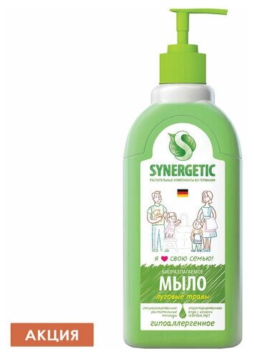 Synergetic Мыло жидкое Synergetic, Луговые травы, биоразлагаемое, гипоаллергенное, с дозатором, 500 мл