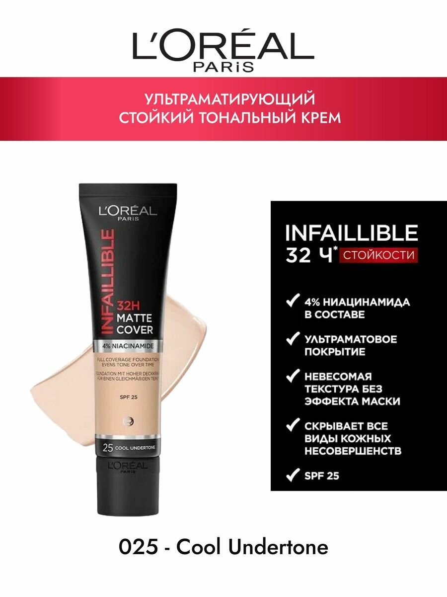 Стойкий тональный крем INFAILLIBLE 32ч тон 025 информация: