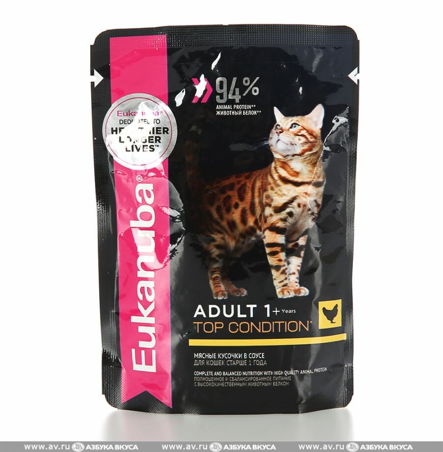 10 цен на Eukanuba Adult Top Condition влажный рацион из курицы в соусе для взрослых кошек, 85г