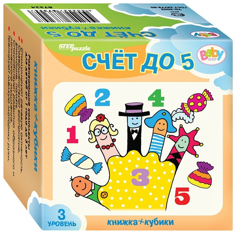 10 цен на Игровой комплект №5 "Кубики + книжка": "Счет до 5", "Чей голос?", "Машинки", "Потешки"