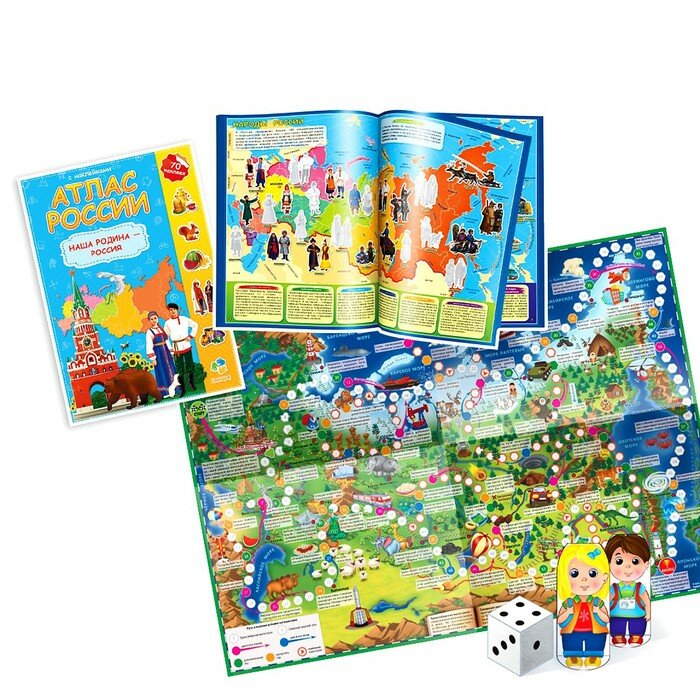 10 цен на Геодом Подарочный набор для любознательных «Россия»: атлас с наклейками, игра-ходилка