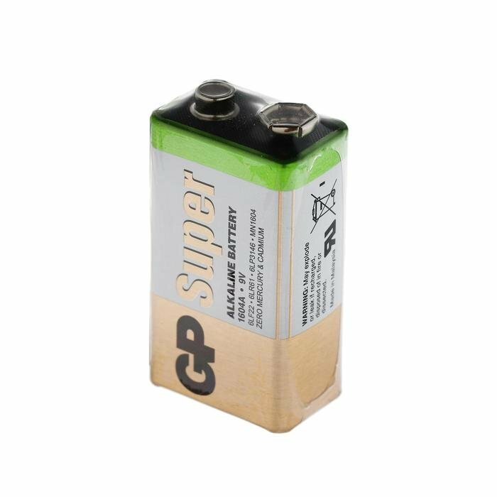 Батарейка GP Super эконом, 9V, 6LR61, Крона, алкалиновая, 1 шт (1604A-OS1)