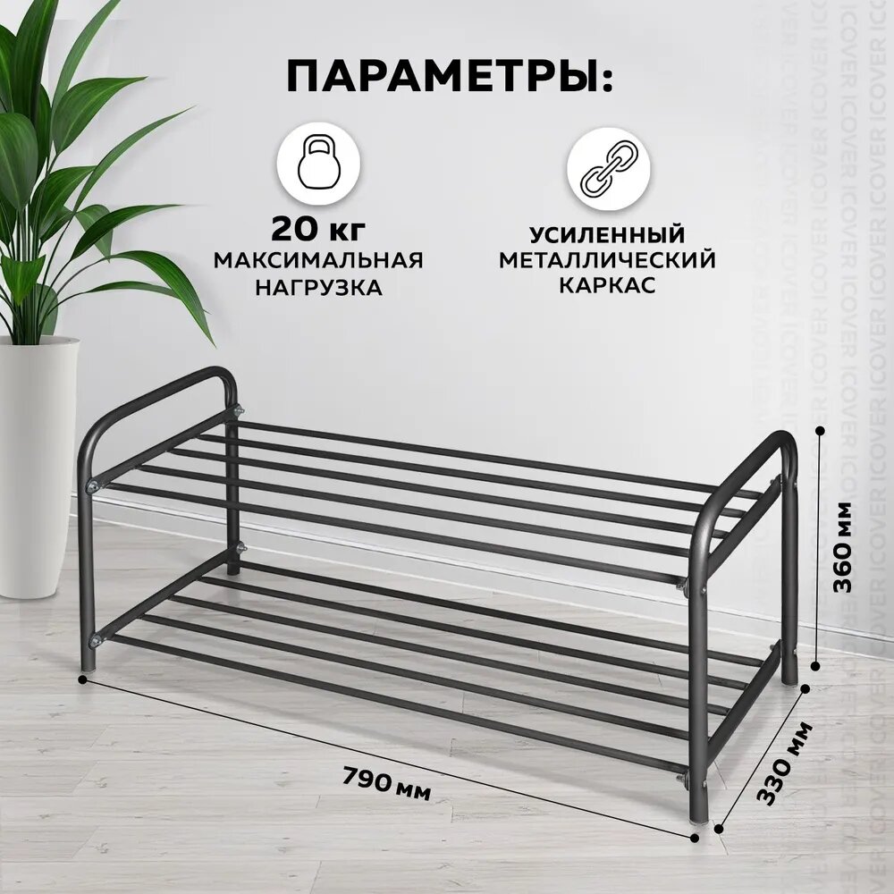 Этажерка для обуви 2 полки 790*330*360мм ЭТК2/Ч (черный)