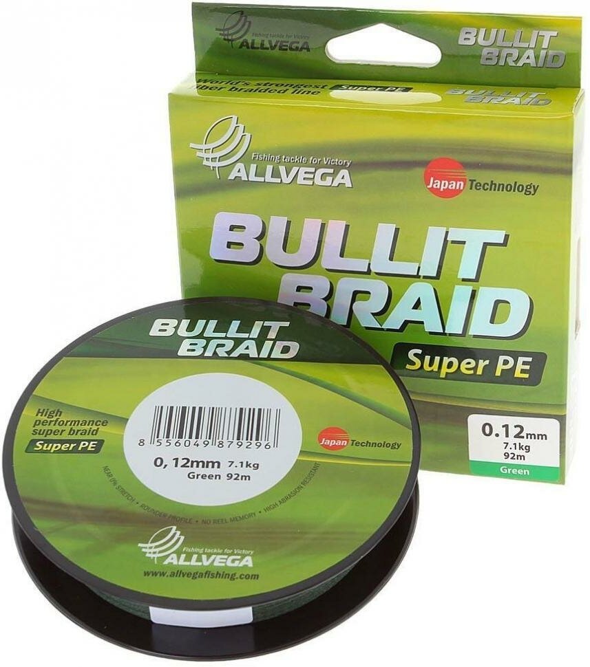 Плетеный шнур Allvega Bullit Braid 92м 0,12мм 7,1кг, темно-зеленая 730 ₽