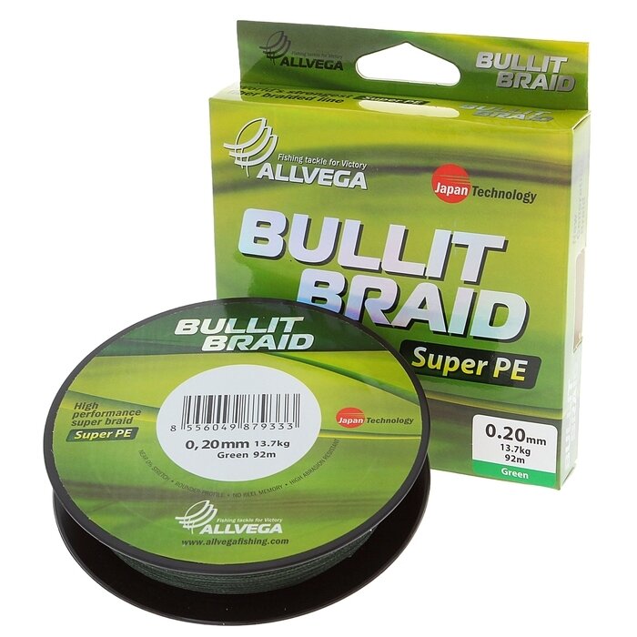 10 цен на Шнур Bullit Braid Allvega 92м, 0,20мм,13.7 кг темно-зеленая