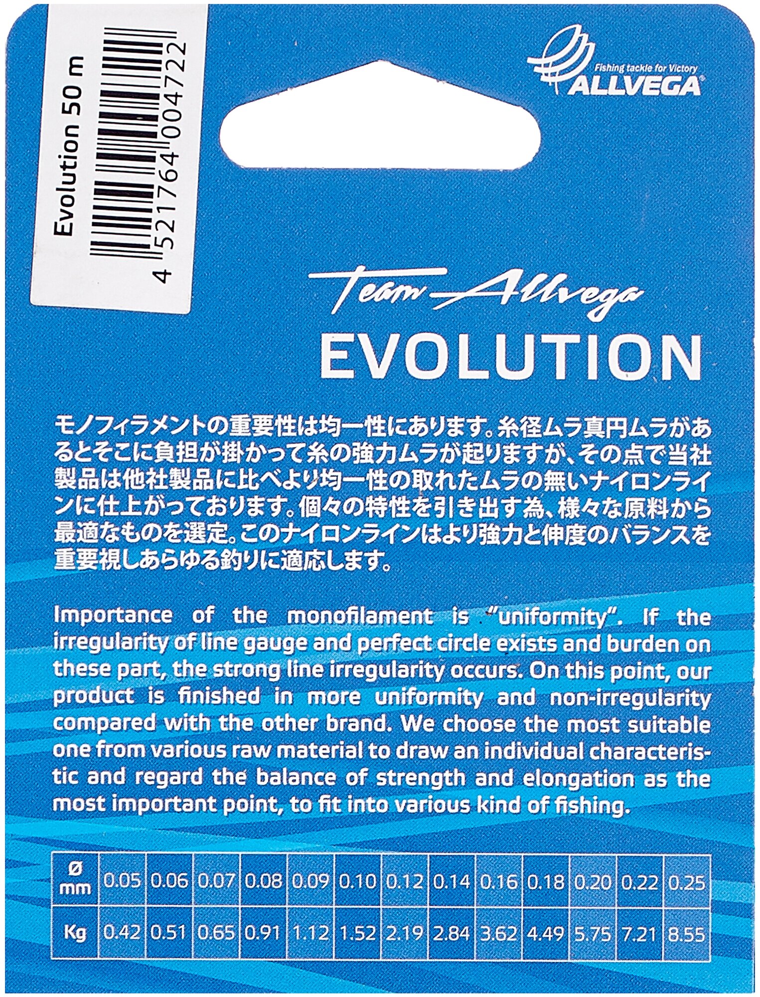 Леска монофильная ALLVEGA "Evolution" 50м 0,22мм, 7,21кг, прозрачная
