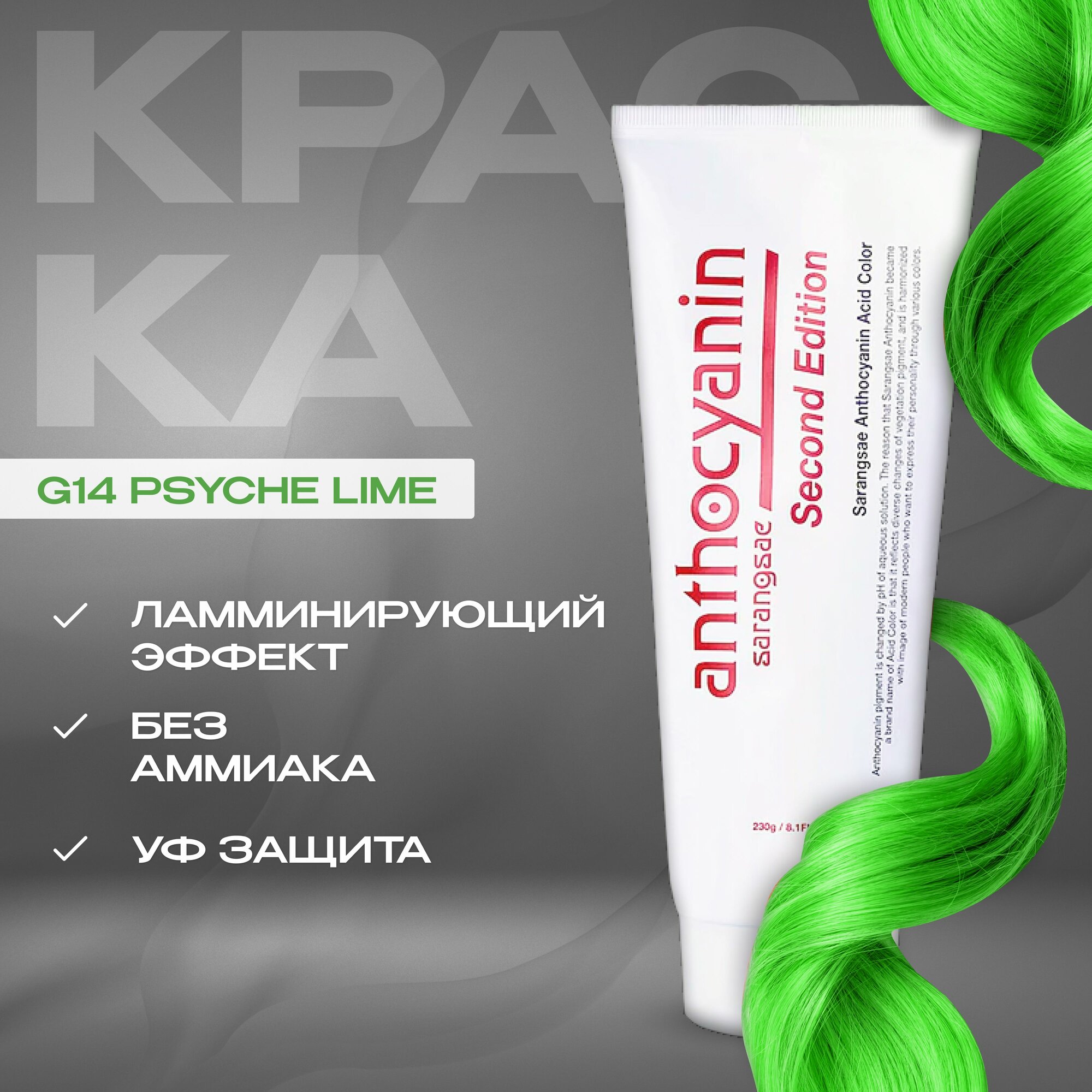 Anthocyanin Салатовая краска для волос G14 Psyche Lime 230 мл профессиональная без аммиака ламинирующая информация: