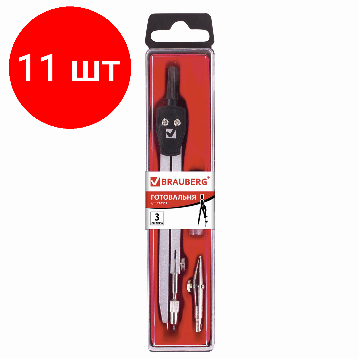 Комплект 11 шт, Готовальня BRAUBERG "Architect", 3 предмета: циркуль 135 мм, рейсфедерная вставка, грифель, 210331 информация: