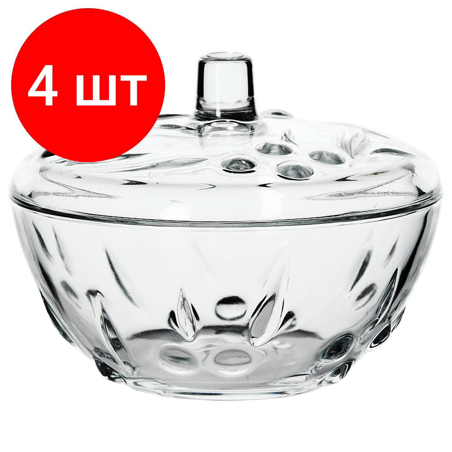 10 цен на Комплект 4 шт, Сахарница, с крышкой, диаметр 140 мм, фактурное стекло, "Perla", PASABAHCE, 97236