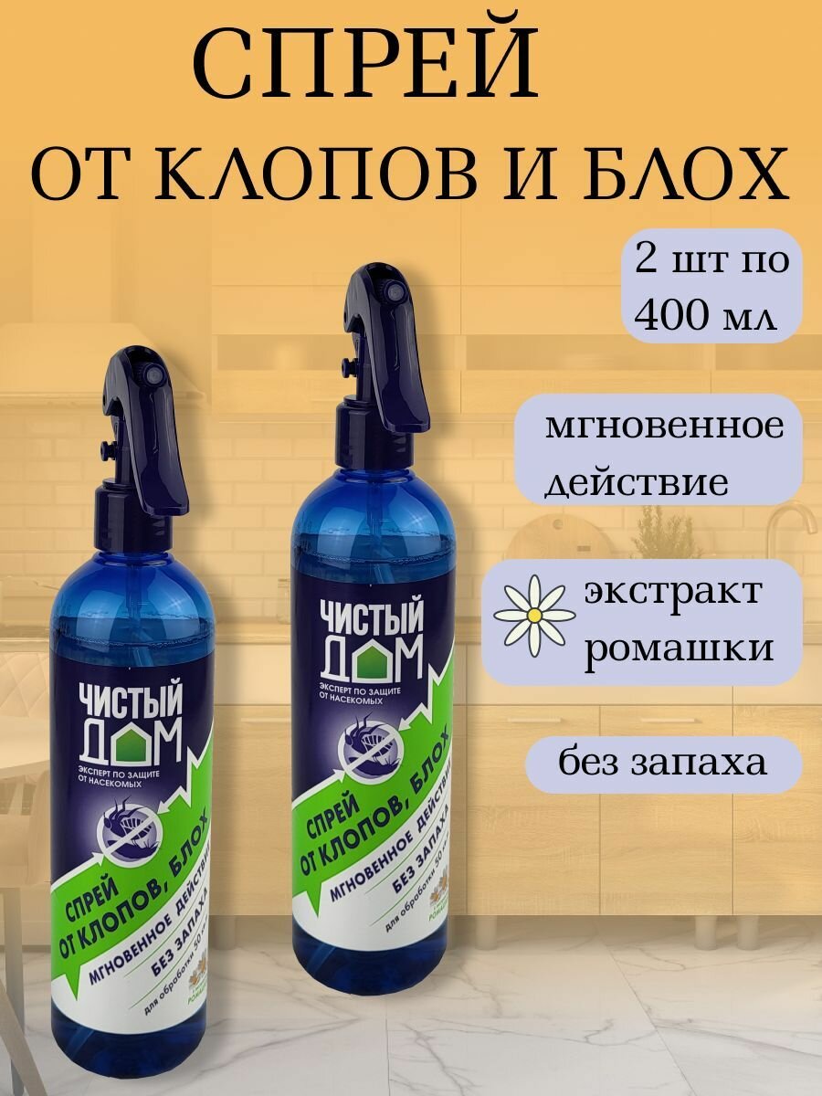 Средство от клопов И блох "чистый ДОМ" спрей С экстрактом ромашки 400 МЛ (1/24)