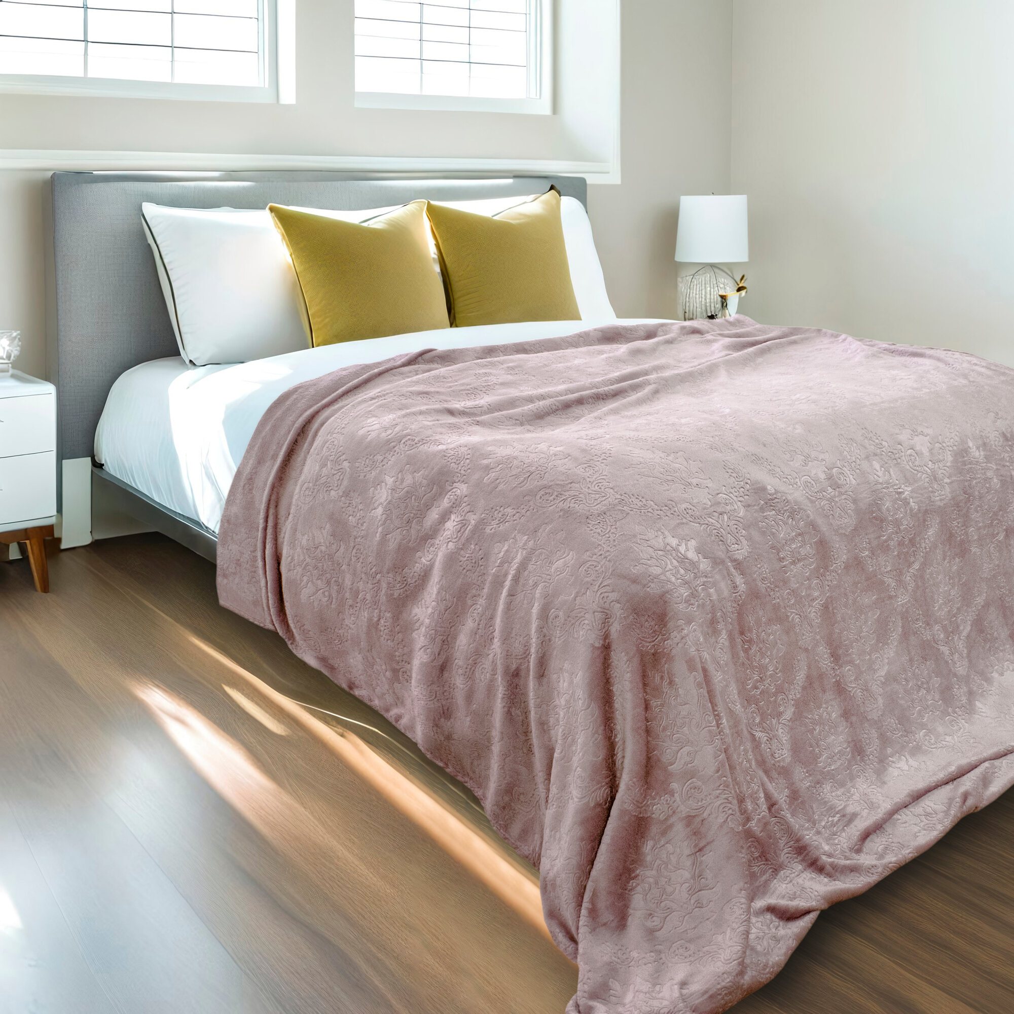 Плед 180х200 2-спальный Cleo Parma розовый шампань, покрывало на кровать и диван пушистое с рисунком, велсофт 1 510 ₽