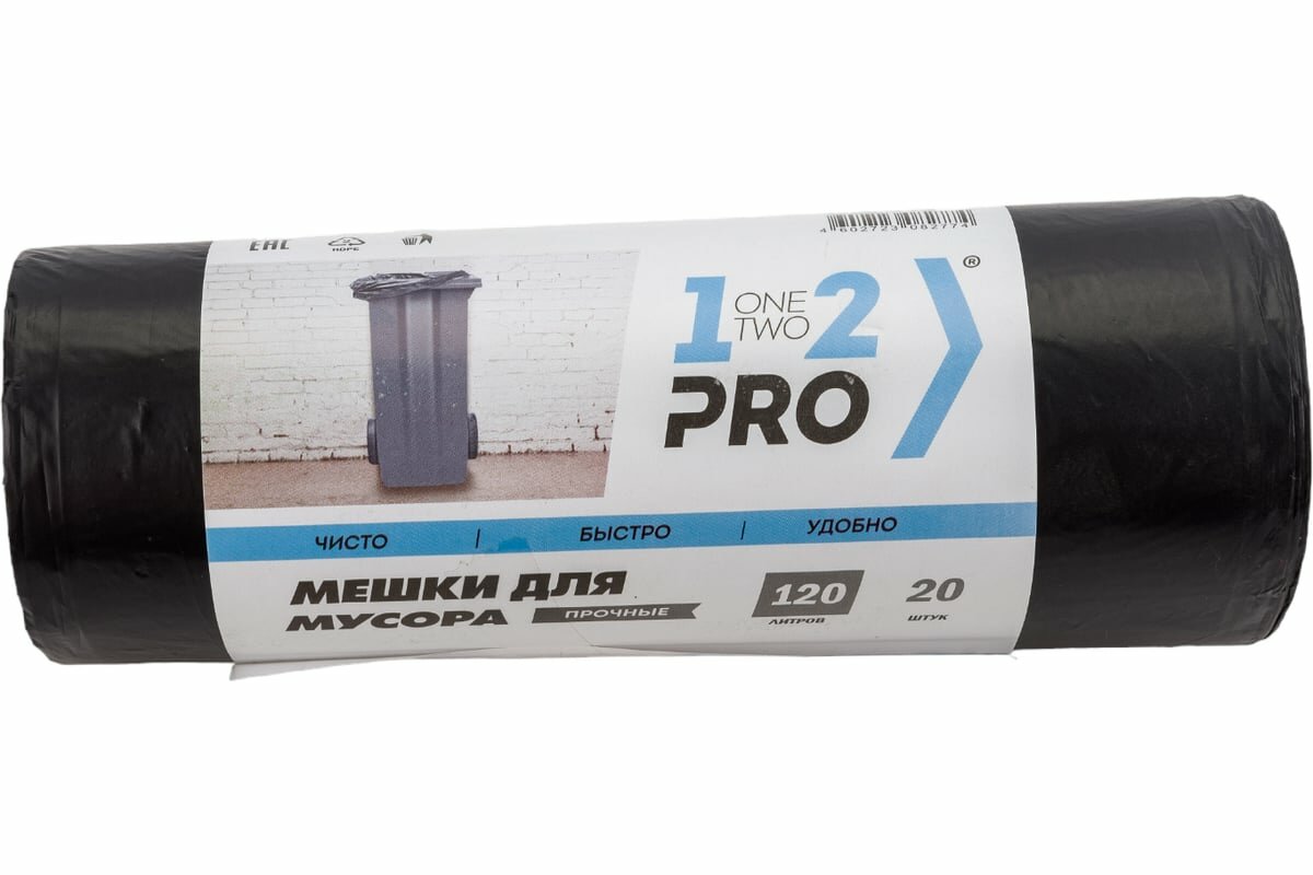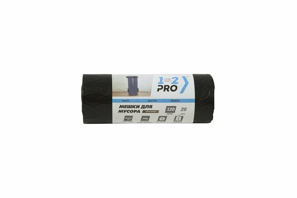 1-2 Pro Мешки для мусора, 120 л, 18 мкм ПНД, 68х105 см, 20 штук в рулоне
