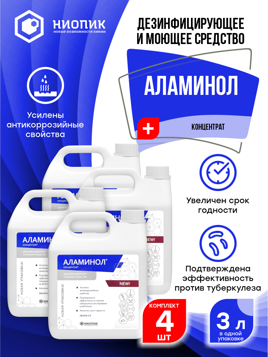 Дезинфицирующее средство Аламинол 3 литра х 4 шт. информация: