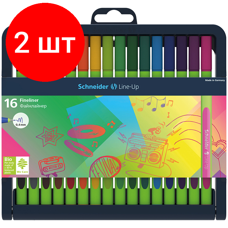 Комплект 2 шт, Набор капиллярных ручек Schneider "Line-Up" 16цв., 0.4мм, европодвес информация: