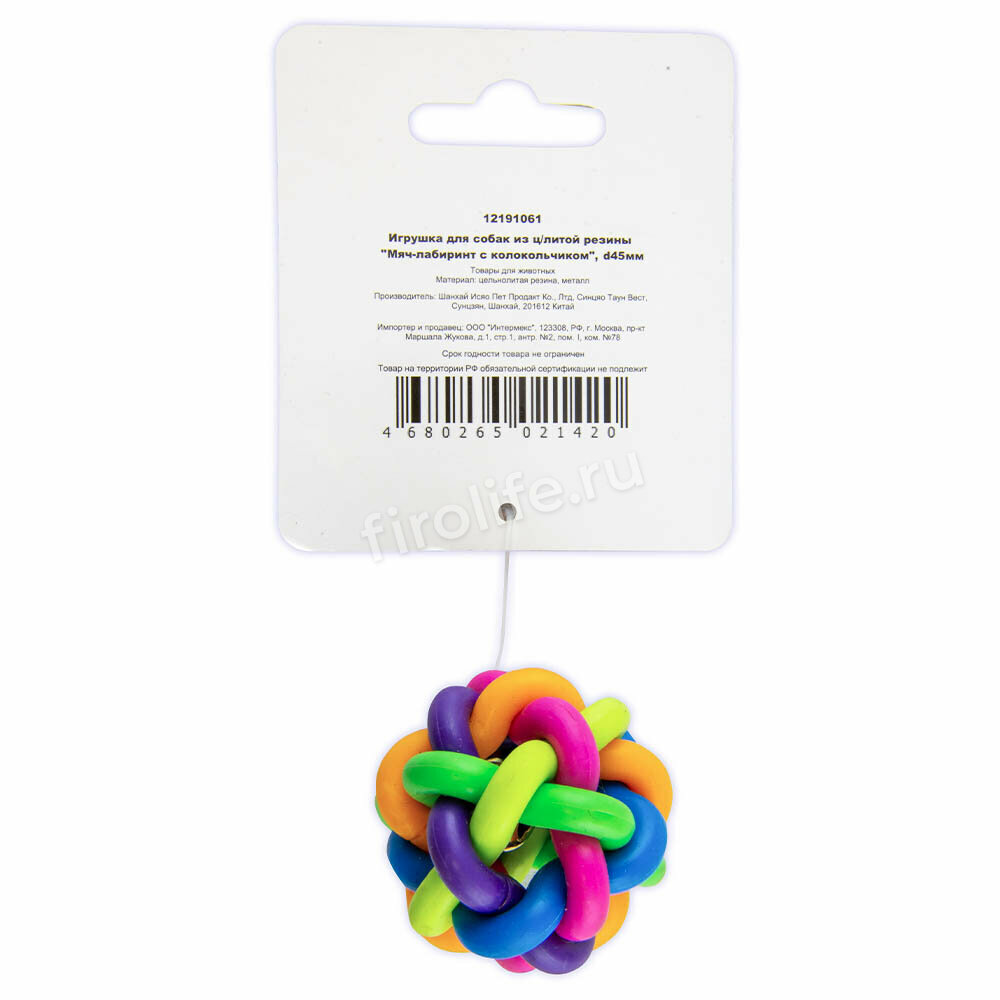 Игрушка для собак из цельнолитой резины "Мяч-лабиринт с колокольчиком", d45мм