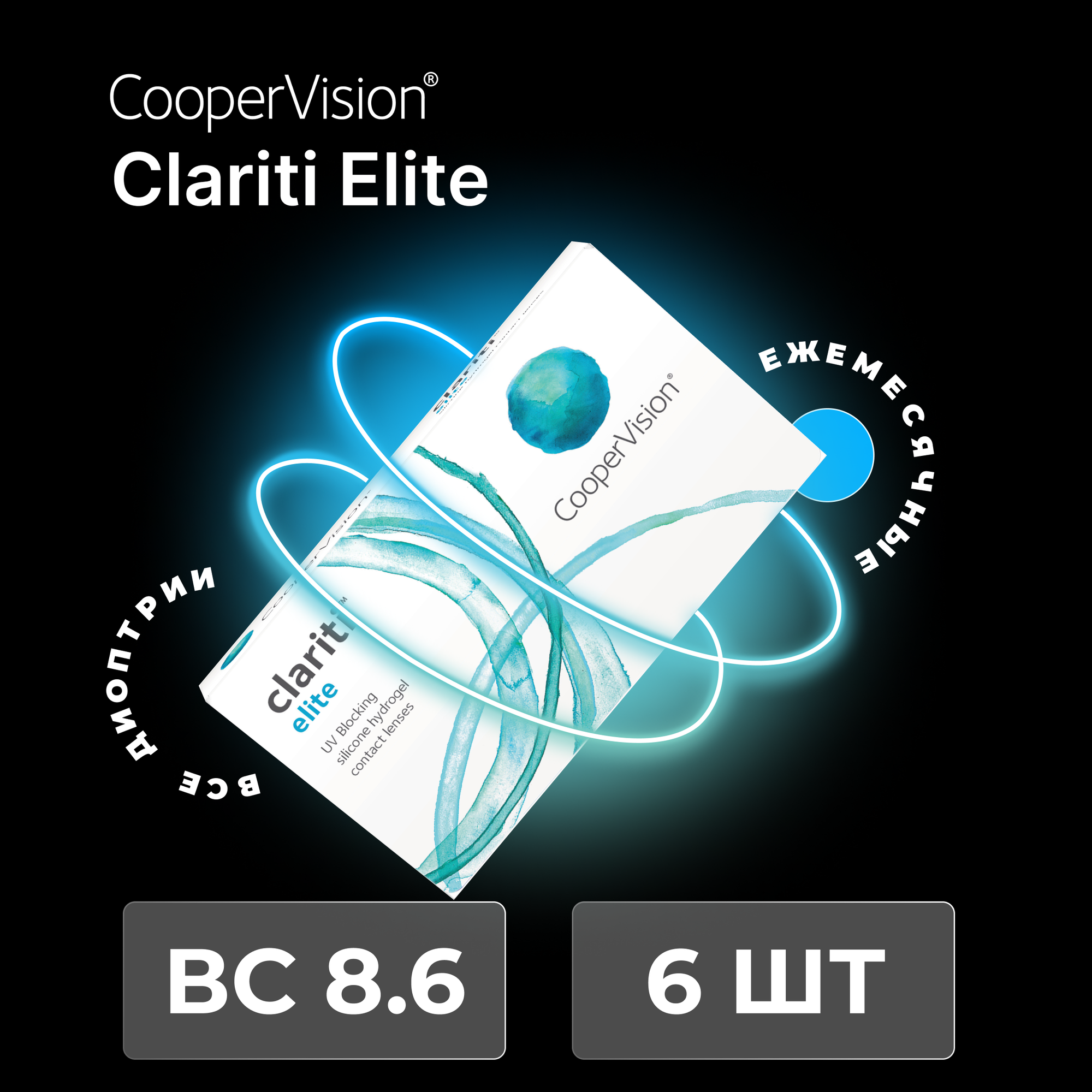 Ежемесячные контактные линзы CooperVision Clariti Elite 6 pk (BC 8.6; R -9.50)