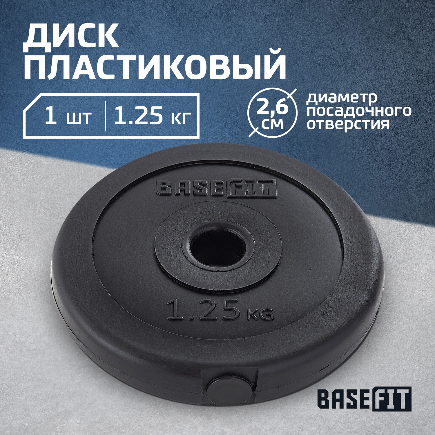 Диск пластиковый BASEFIT BB-203 1,25 кг, d=26 мм, цвет черный 269 ₽