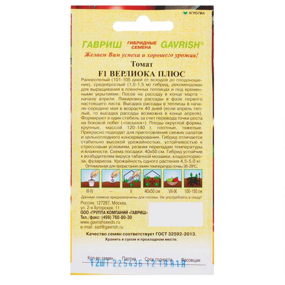 10 цен на Томат Верлиока плюс F1 12 шт. автор.