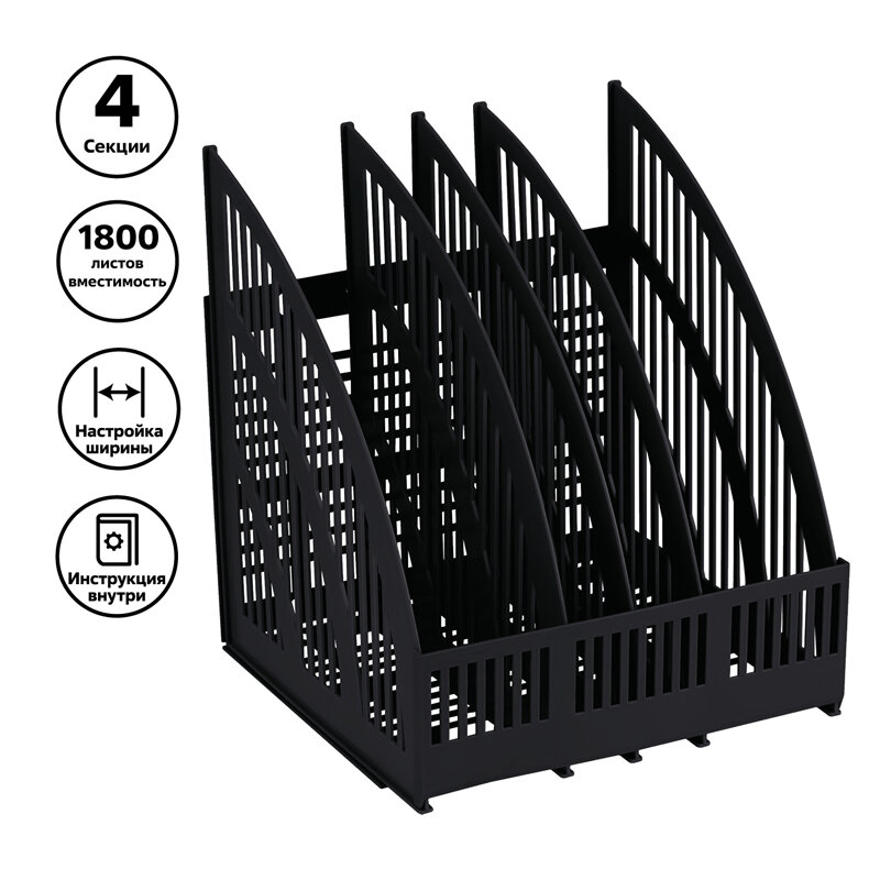 Лоток для бумаг вертикальный СТАММ "Line", сборный, 4 отделения, черный 594 ₽