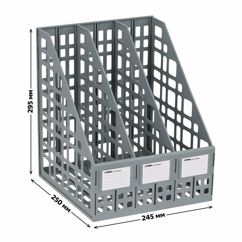 Лоток вертикальный для бумаг СТАММ (245х240х300 мм), 3 отделения, сетчатый, сборный, серый, ЛТ80 690 ₽