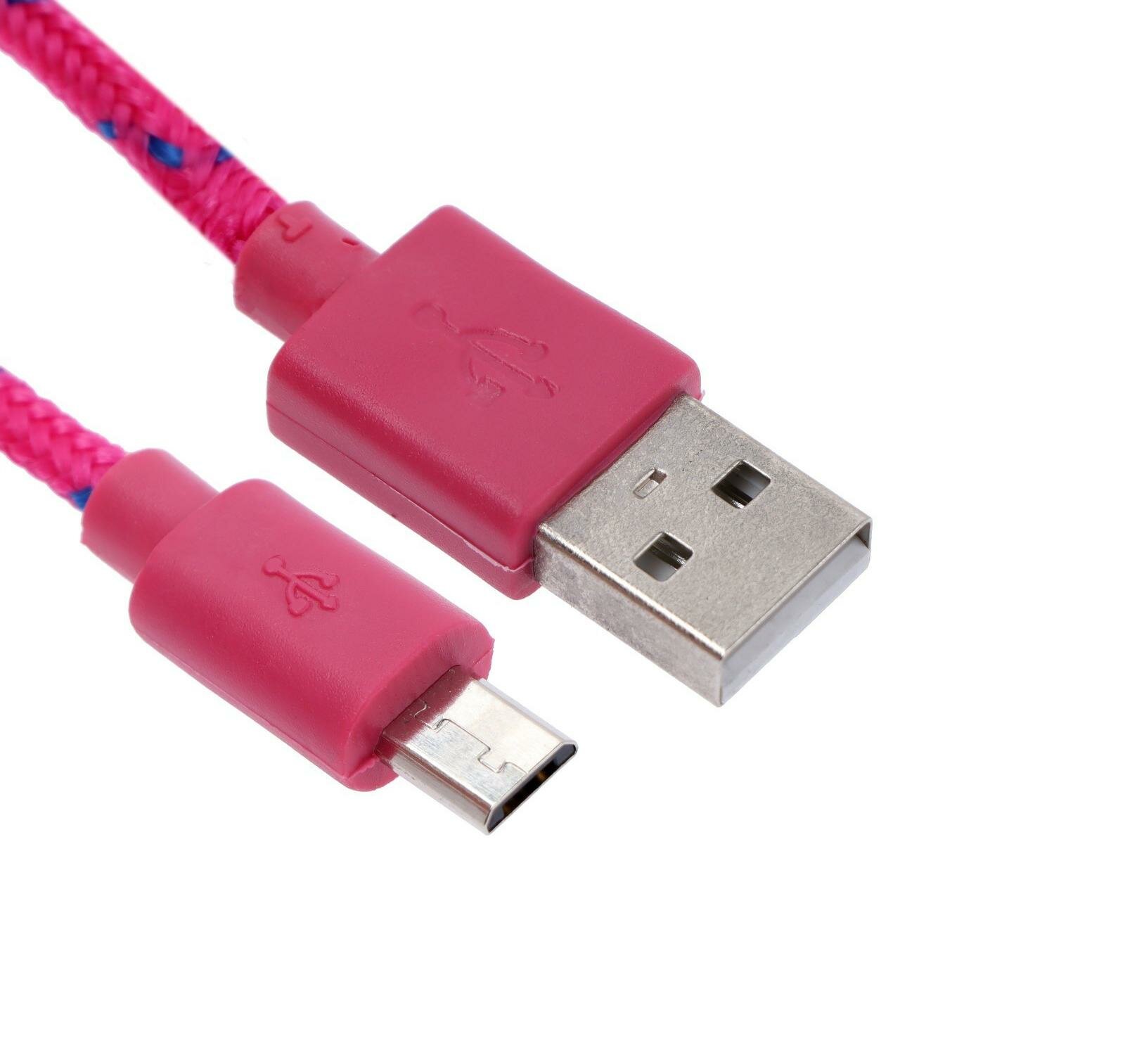 10 цен на Кабель OXION DCC288, microUSB - USB, зарядка + передача данных, 1 м, оплетка, розовый, 2 штуки