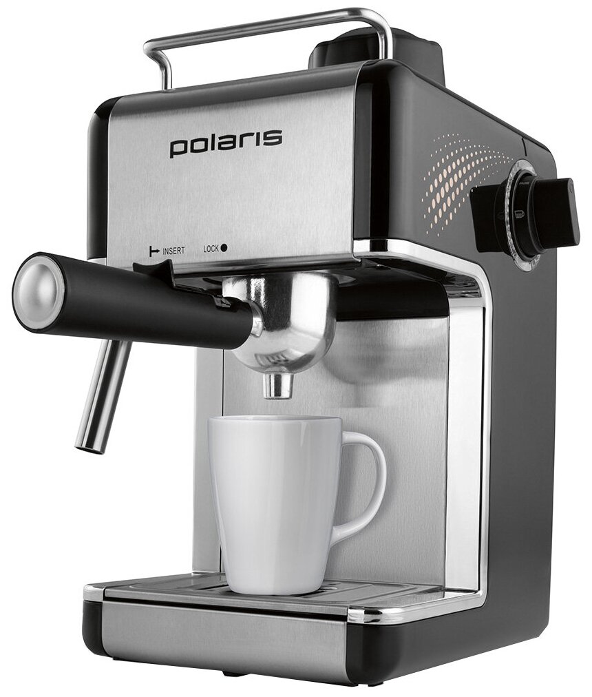 Кофеварка рожковая эспрессо Polaris PCM 4010A, черный, серебристый информация: