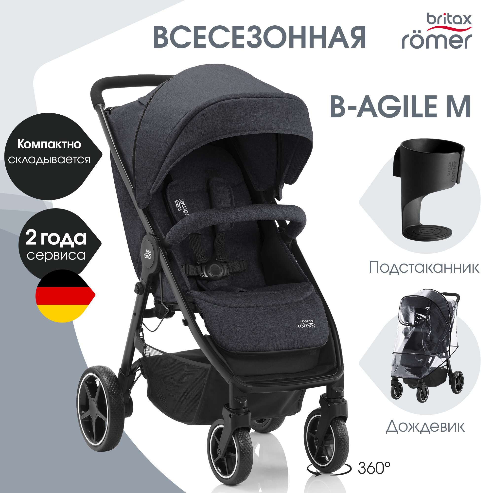 Прогулочная коляска Britax Romer B-Agile M Black Shadow, детская, темно серая, универсальная, всесезонная, для путешествий, для детей от 6 месяцев