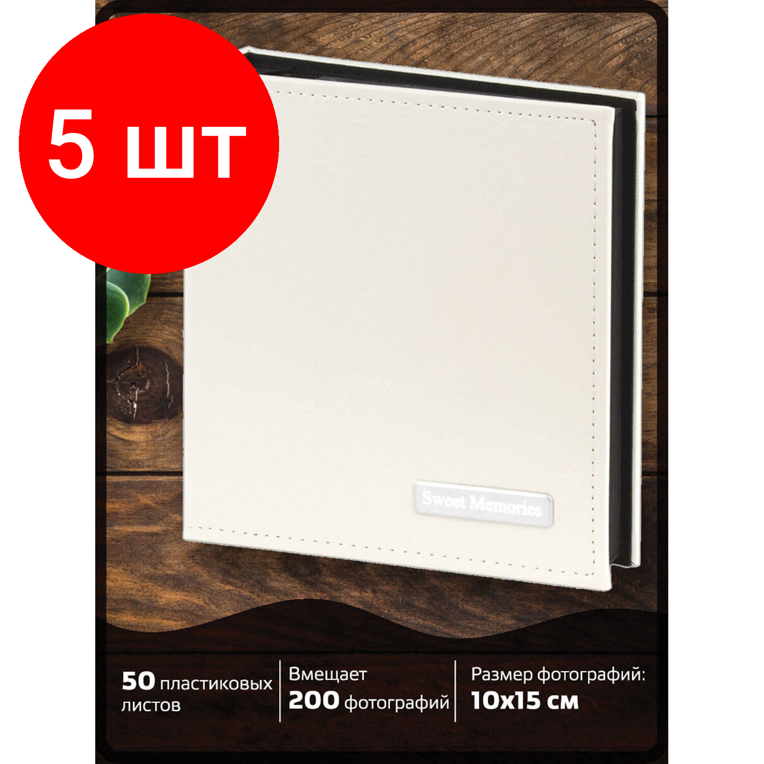 Комплект 5 шт, Фотоальбом BRAUBERG на 200 фото 10х15 см, под гладкую кожу, индивидуальный бокс, белый, 391115 информация: