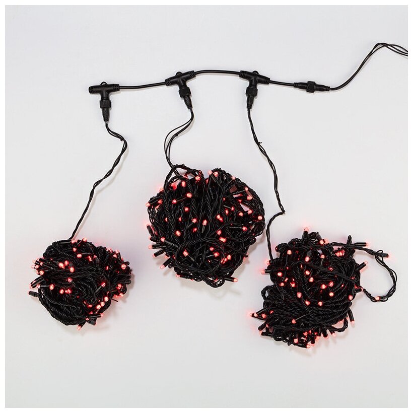 Гирлянда светодиодная 3 нити x20м 399LED красная, провод черный ''Клип Лайт Спайдер Каучук'' 24В с трансформатором 323-302 Неон-Найт