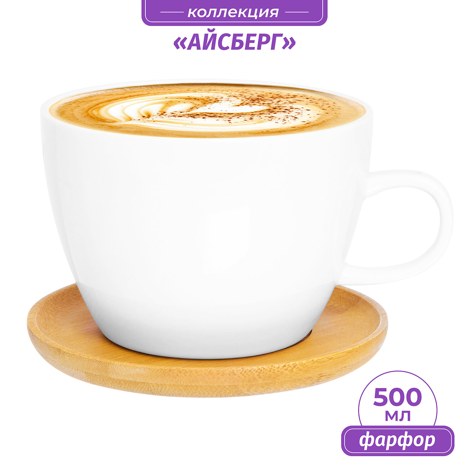 Чашка для капучино и кофе латте 500 мл 14,5х12,8х9 см "Снежная королева" + дер. подставка