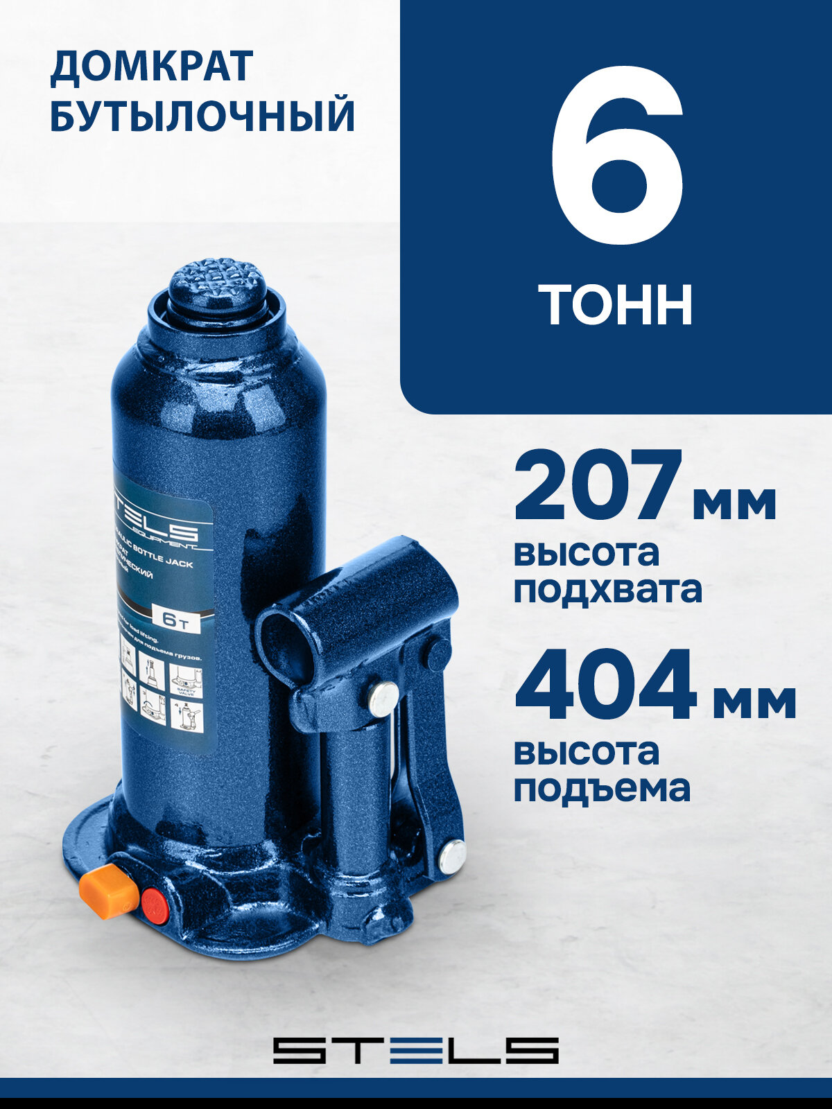 Домкрат гидравлический бутылочный, 6 т, h подъема 207-404 мм Stels STELS