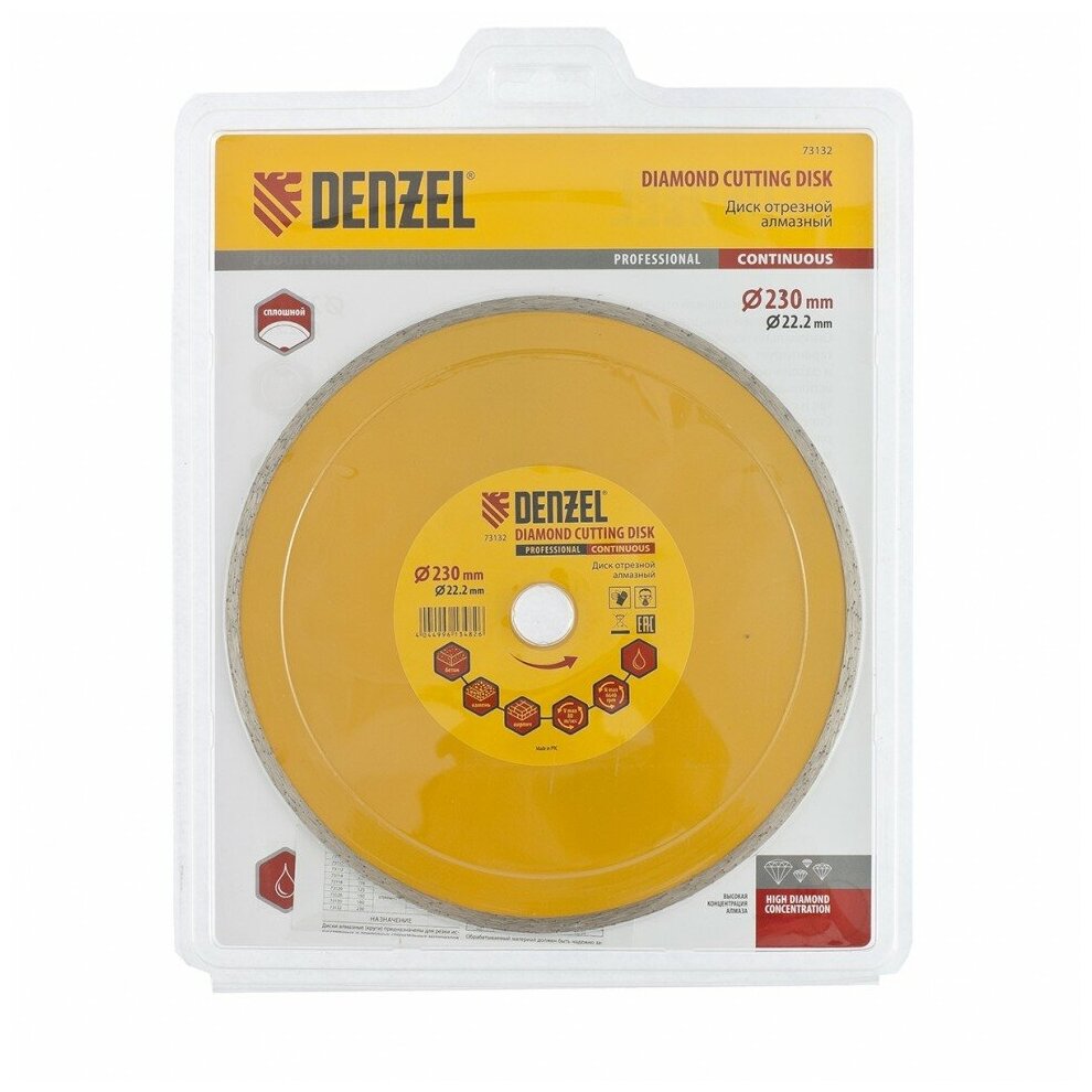 Диск алмазный, отрезной сплошной, 230 х 22.2 мм, мокрая резка Denzel информация: