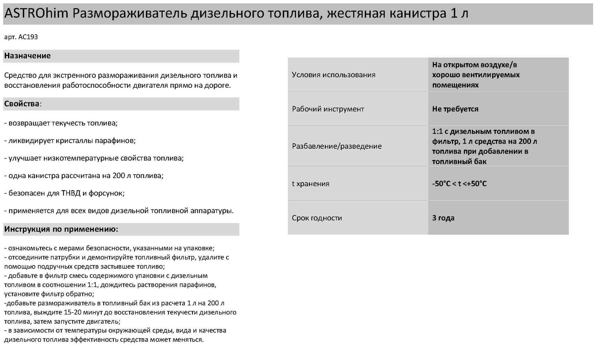 Размораживатель дизельного топлива ASTROhim, 1 л, комплект 2 шт