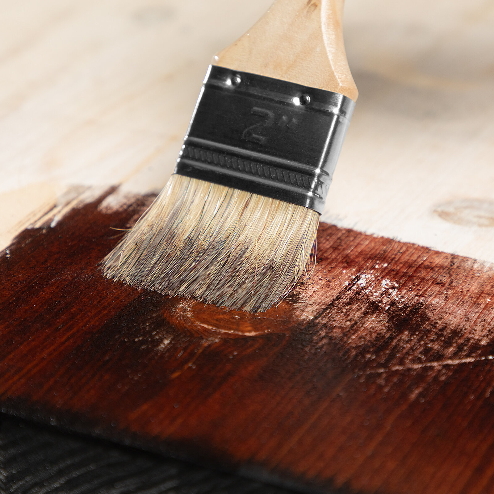 Кисть плоская "Стандарт" 2" (50 мм), натуральная щетина, деревянная ручка, бежевый/красный // MATRIX
